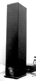 Let's recap the basic Lotus design: What we have here is a three-way dynamic speaker, with an 8-inch woofer loaded in a 28-litre box, and a 5.25-inch trilaminate-cone midrange driver and 1-inch aluminum-dome tweeter mounted to a rigid wooden baffle. The whole thing is covered with a black fabric "sock," and it stands about four-and-a-half feet tall. The crossovers - which cross over at 400 and 3500 Hz - are outboard, and those enclosures, like the speakers themselves, sit on pointy metal feet. These speakers are tri-wireable.